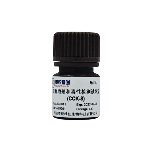 The Cell Counting Kit-8 (CCK-8) uses a water-soluble tetrazole salt WST-8 that is bioreduced in live cells to produce a methane dye. This enzymatic reduction relies on intracellular dehydrogenase activity, allowing for a direct correlation between the amount of methane produced and the number of viable cells. The water solubility of the resulting methane simplifies the assay procedure and can be quantified by a microplate reader. This kit is commonly used in biomedical research to assess cell proliferation, viability, and cytotoxicity in vitro. Compared to methods like MTT, XTT, MTS, or WST-1, CCK-8 offers increased sensitivity and ease of use.
