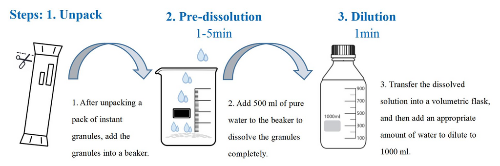 Note: Wash the container sufficiently with pure water before preparation, and clean it in time after preparation.