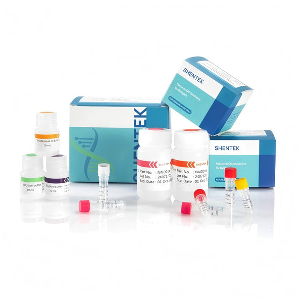 The SHENTEK® Residual Host Cell DNA Sample Preparation Kit (Cat No.:SK030203D100) utilizes magnetic particle separation to achieve stable and efficient extraction of trace host cell DNA from biological samples. This kit is compatible with SHENTEK® host cell (CHO, E.coli, Vero, yeast, NS0, Human, MDCK, Sf9 & AcNPV, Hi5 & AcNPV, plasmid, SV40LTA & EIA et al.) DNA quantitation kits.