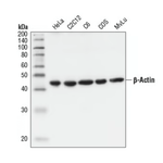 β-Actin Antibody detects endogenous levels of β-actin. Due to the high sequence identity between the actin isoforms, β-Actin Antibody may cross-react with other actin isoforms.