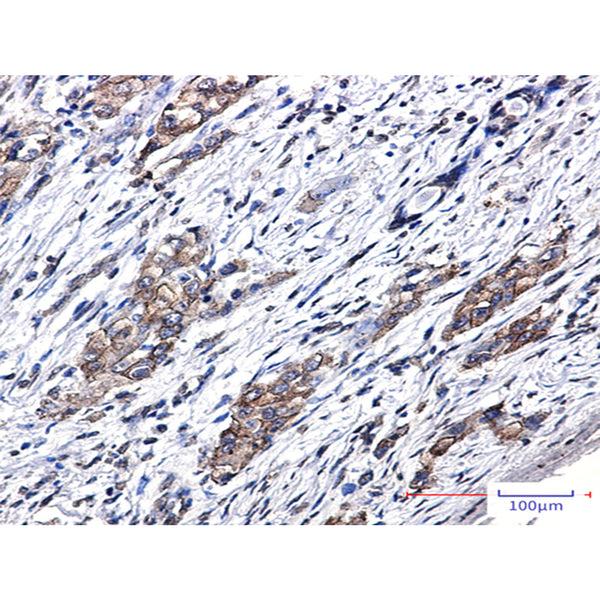 Immunohistochemical analysis of paraffin-embedded Human lung cancer tissue using P291682(ZFYVE9 Antibody) at dilution 1/50