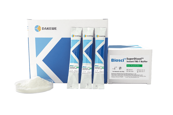 Instant TBS-T Buffer is white to off-white instant granules, and each pack of this product can produce 1 L of 1 × TBS-T Buffer, which is easy to operate and use. The main components of TBS-T are sodium chloride, potassium chloride, Tris buffer salt and Tween-20. The concentration of sodium chloride, potassium chloride and Tris buffer salt in 1 × TBS-T Buffer is 137 mM, 2.7 mM and 25 mM respectively, and the content of Tween-20 is 0.05%.