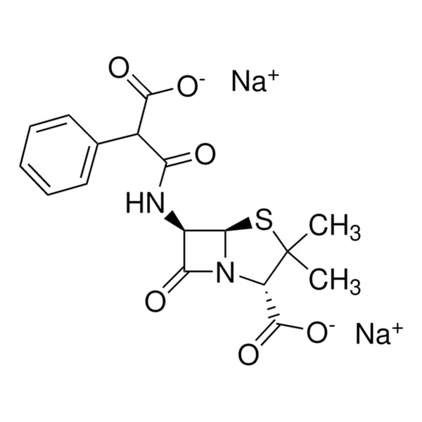 Mode of Action: Carboxypenicillin antibiotic that inhibits bacterial cell-wall synthesis (peptidoglycan cross-linking) by inactivating transpeptidases on the inner surface of the bacterial cell membrane.