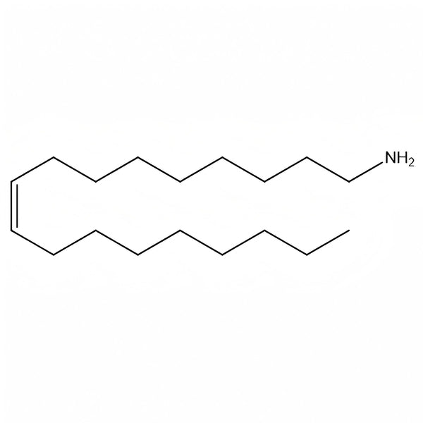 Industrial oleylamine is produced through a multi-step chemical process. Oleic acid (set link here) is typically used as the starting material and is first converted into a nitrile intermediate. This intermediate then undergoes high-pressure hydrogenation, which reduces it to the desired oleylamine.