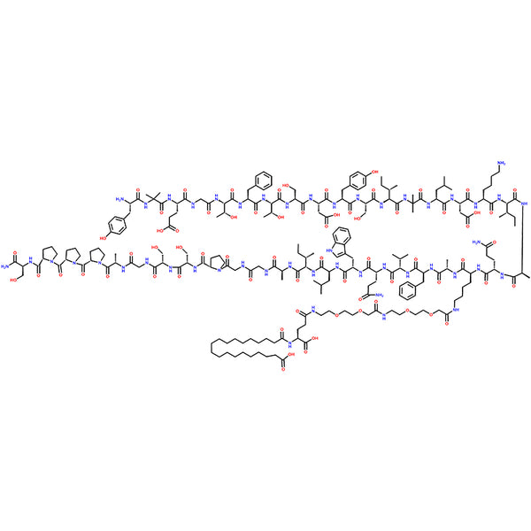 | IUPAC NAME | H-Tyr-Aib-Glu-Gly-Thr-Phe-Thr-Ser-Asp-Tyr-Ser-Ile-Aib-Leu-Asp-Lys-Ile-Ala-Gln-Lys(AEEAc-AEEAc-γ-Glu-18-carboxy nonadecanoyl)-Ala-Phe-Val-D-Gln-Trp-Leu-Ile-Ala-Gly-Gly-Pro-Ser-Ser-Gly-Ala-Pro-Pro-Pro-Ser-NH2 |