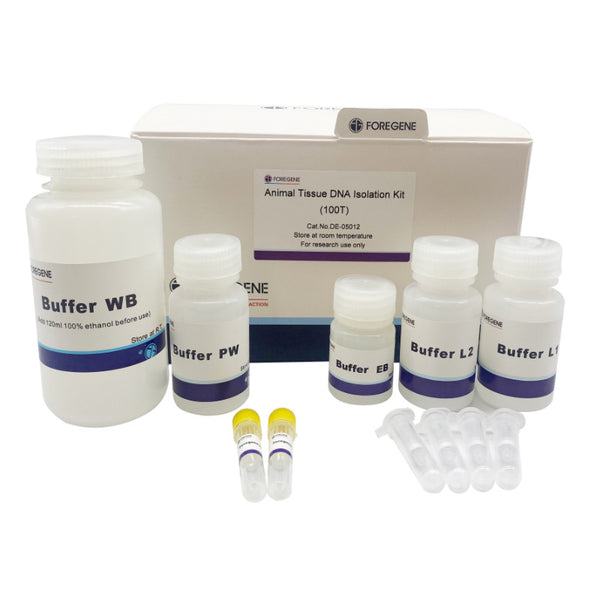 This kit uses a DNA-only column that can specifically bind DNA, Foregene protease and a unique buffer system. High-quality genomic DNA can be extracted from various cultured cells and animal tissues within 30 to 50 minutes.