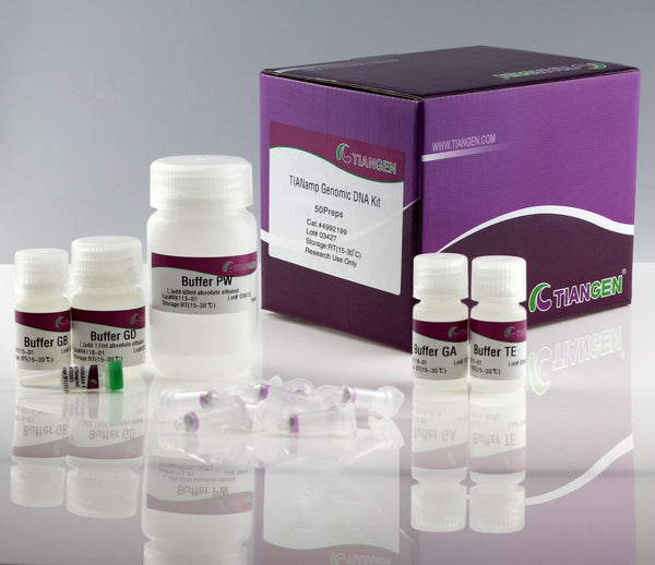 The TIANamp Genomic DNA Kit provides a fast and easy silica-based format for DNA purification. The kit simplifies the purification of DNA from a wide range of sample types, including animal blood (≤ 1 ml), cultured cells, and tissues commonly encountered in life science, veterinary, and genotyping applications. Most samples could be directly lysed with the provided buffer system, eliminating the need for mechanical disruption and also reducing hands-on time. The kit purifies high-quality DNA without proteins and inhibitors. The purified DNA is suitable for PCR, restriction digestion and Southern blot.