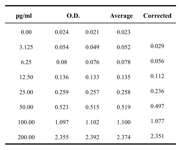 | Range Standard | 3.125 pg/mL - 200 pg/mL |