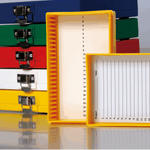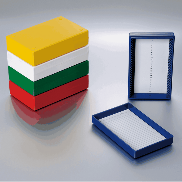 Each slot is numbered to correspond to the slide inventory sheet inside the lid