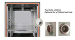 Test hole: 1 piece of φ50mm test hole (located on the left side of chamber, φ100mm test hole and quantity is optional). FREE charge if need more andbigger test hole.