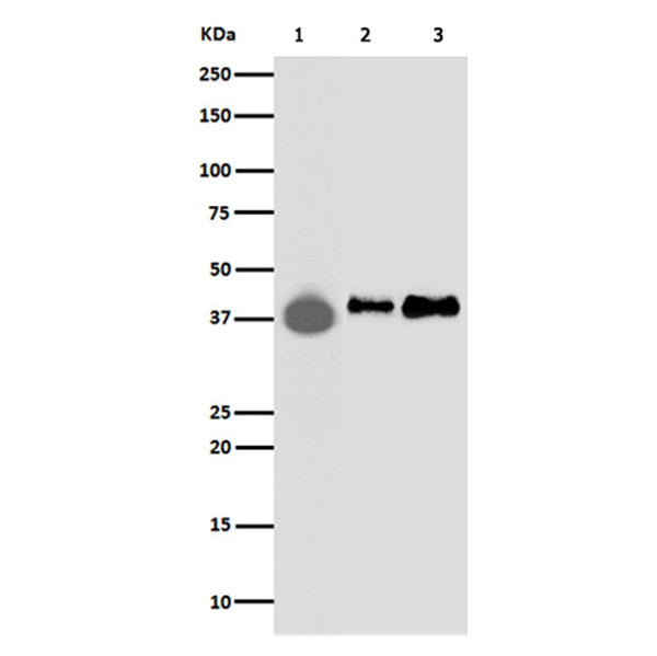 -20°C, Rabbit IgG in phosphate buffered saline, pH 7.4, 150mM NaCl, 0.02% sodium azide and 50% glycerol. Avoid repeated freeze-thaw cycles.