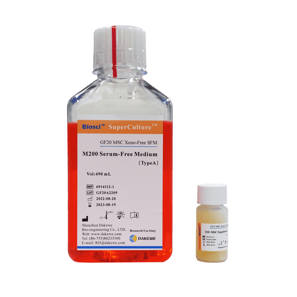 2. Thaw 10 mL of F20 MSC Supplement completely in sterile conditions, and add it into 490 mL of M200 Serum-Free Medium to prepare a complete medium with a total volume of 500 mL.