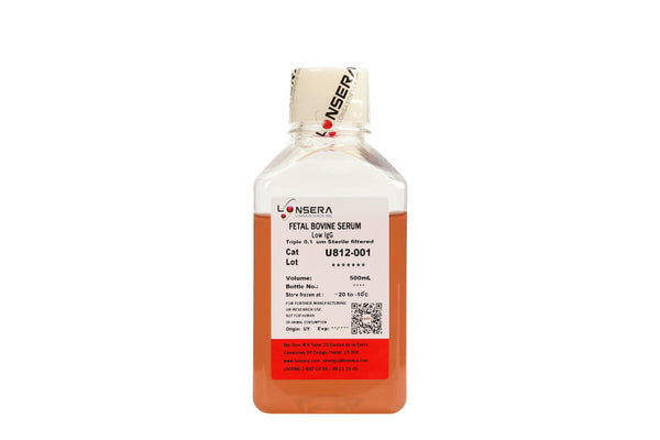 Our Low IgG Fetal Bovine Serum is expertly curated from select lots with naturally low levels of Immunoglobulin G (IgG), the major immunoglobulin in normal bovine serum, which makes up 70-75% of the total immunoglobulin pool. Recognized for its critical role in immune function and its unique ability to cross the placenta, IgG in natural bovine serum can sometimes interfere with specific cell culture studies, particularly when the research involves the production of unique IgG molecules.