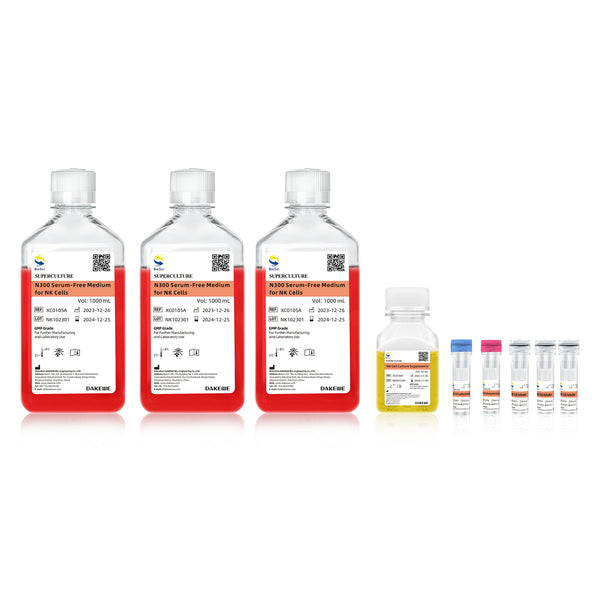 Natural Killer Cells Induction Culture Kit 3.0 is a GMP-grade in vitro induced expansion culture kit, which is suitable for natural killer cell expansion without feeder cells. The kit includes NK Cell Coating Solution, NK Cell Induction Solution, NK Cell Activator, NK Cell Culture Supplement and N300 Serum-Free Medium for NK Cells. This product has stable inter-batch quality and is used to induce and expand NK cells from umbilical cord blood in vitro.
