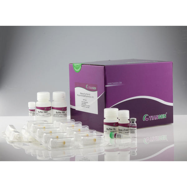 The RNAprep Pure Plant Plus Kit (Polysaccharides & Polyphenolics-rich) is a silicon matrix purification RNA extraction kit developed for multiple plant samples with polysaccharides and polyphenolics. It is supplied with Buffer SL with superb lysis ability. High-purity total RNA without gDNA can be extracted from the fleshes of bananas, watermelons, apples, pears, the tubers of sweet potatoes, potatoes, as well as the leaves of cotton, rose, alfalfa, rice and white pine needles within 1 hour.